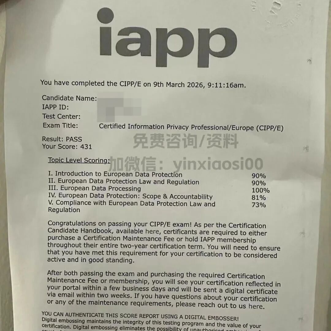 四天速成【CIPP/E】怎么复习?线上考试如何避坑?考完CIPP/E啦,顺利通关!✍🏻我的备考节奏是【四天速成】:Day1:把视频课快速过一遍(我有基础,之前与合规打不少交道,但比较零碎,不