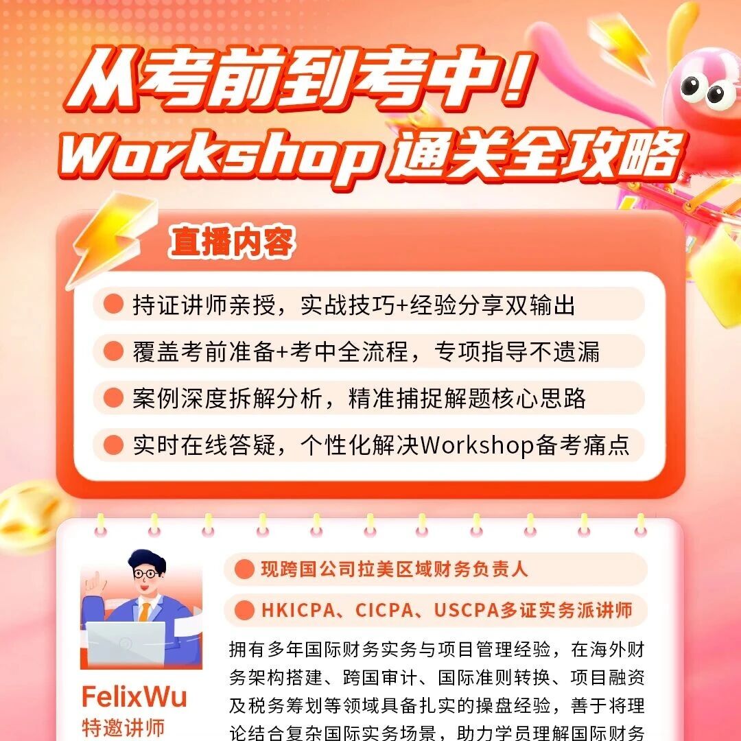 【直播预告】还在焦虑Workshop?这场直播帮你稳住节奏、看透套路!考前焦虑?题目看不懂?Workshop到底考啥?别慌,这场直播直接带你“看穿考官的心思”。Felix老师——跨国公司财务