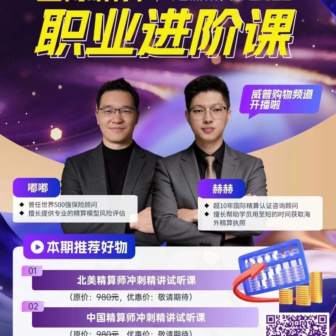 同样是精算证,为什么薪资差距这么大?该怎么选,才能快速实现薪资翻倍?\n今晚资深精顾问坐镇直播间,帮你搞定精算考证与职业进阶的所有难题\n-------------------------------