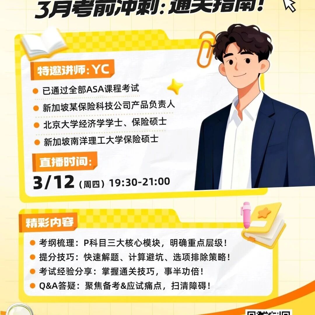 【直播预告】精算考试Excel全通关直播来啦精算场景下哪些Excel技能至实用?如何快速上手不费时间?怎样让Excel学习匹配备考需求?快来直播间,Stella老师将结合实务案例,讲解函数落