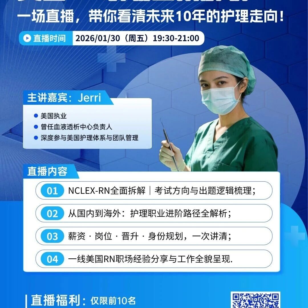 📢我的白衣人生!Mandy老师带大家~走进美国护士的精彩世界!想知道美国护士的职业生活到底是什么样吗⁉想提前了解职业规划和成长机会?Mandy老师将带你一起探索,让你看到护士工作中的亮点与可