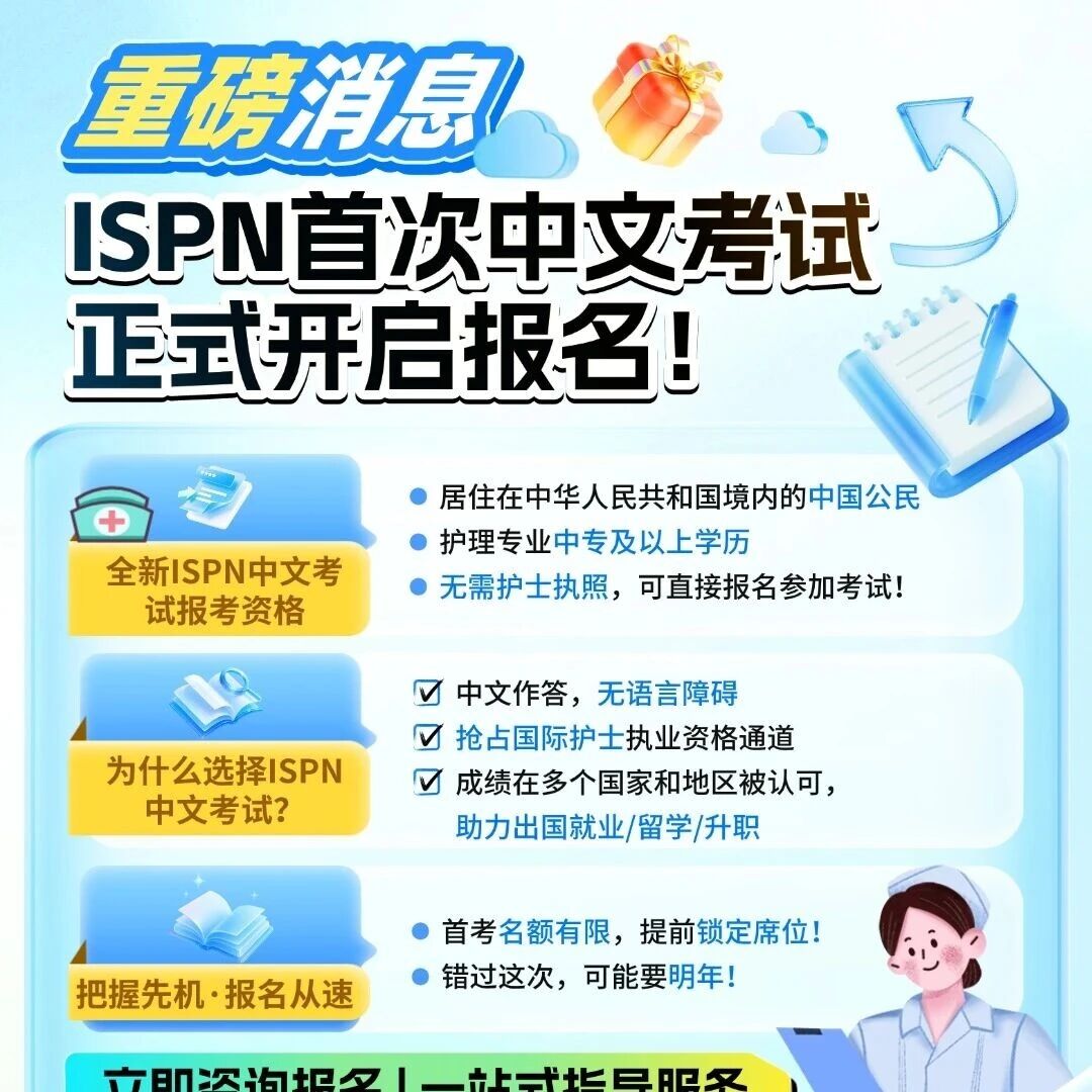 📢ISPN中文考试正式开放报名!随着国际医疗合作不断深化,拥有全球认可的护士资格,正在成为职场发展的新优势。ISPN中文考试的开放,为更多护理专业人才提供了新的成长机会。这对很多想了解国际护