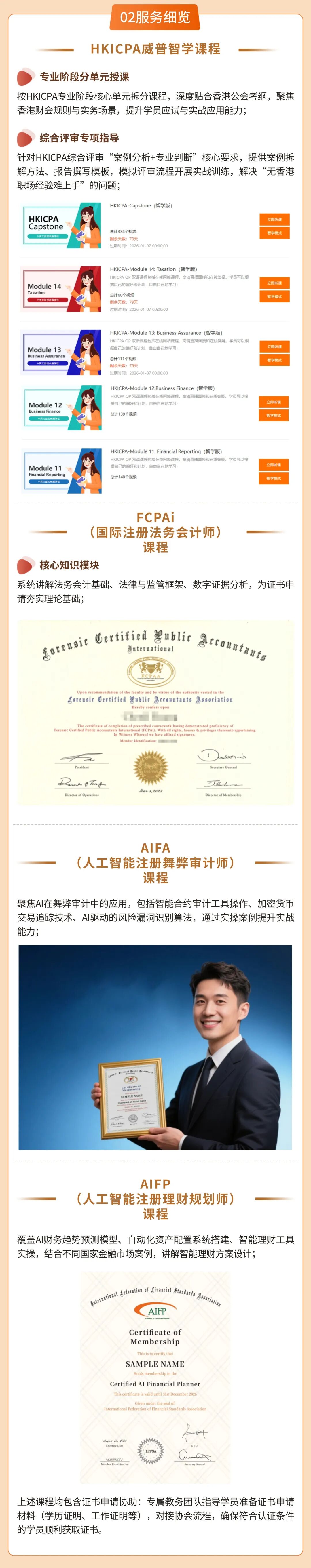威普爱生的HKICPA辅导服务涵盖多个方面,力求满足不同考生的需求: