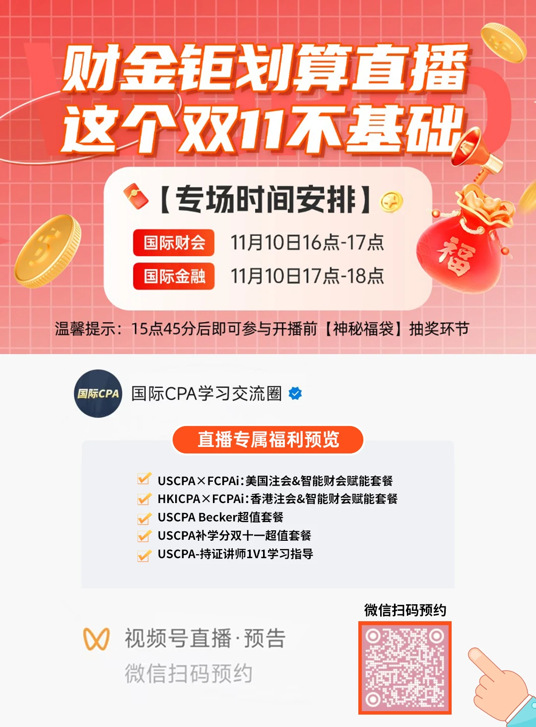 📍预约+观看方式:识别图1/图3海报二维码直达,点击预约后,系统将在活动当天发送开播提醒。记得关注@国际CPA学习交流圈,准时来看直播哦!