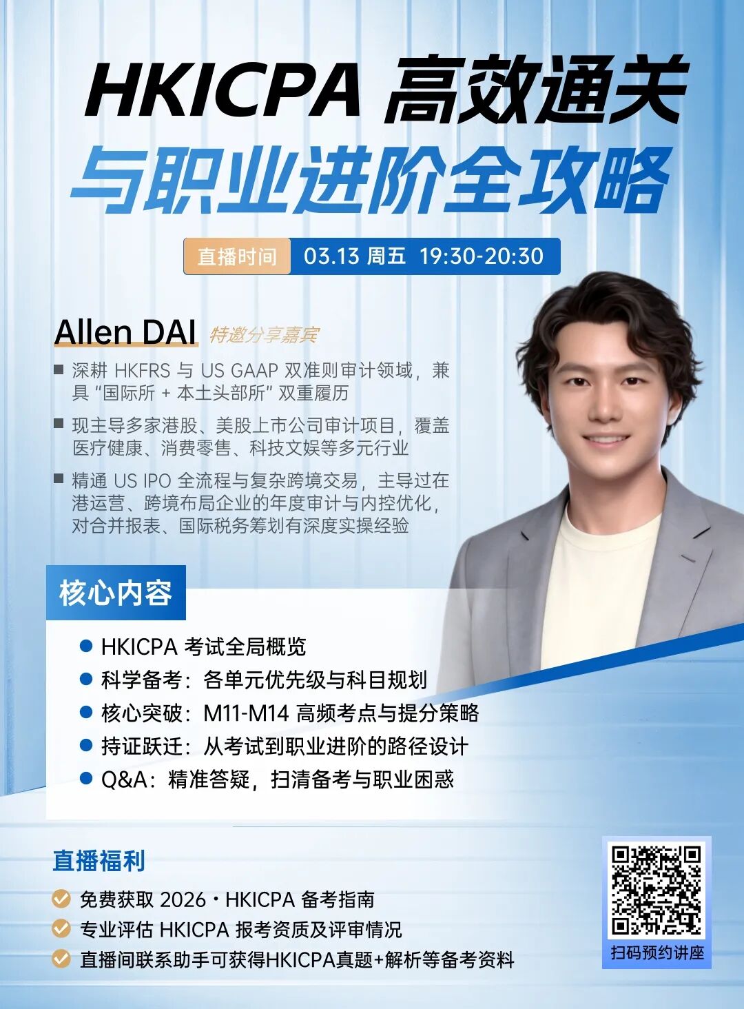 准备考香港注册会计师HKICPA的同学一定要冲一下这场