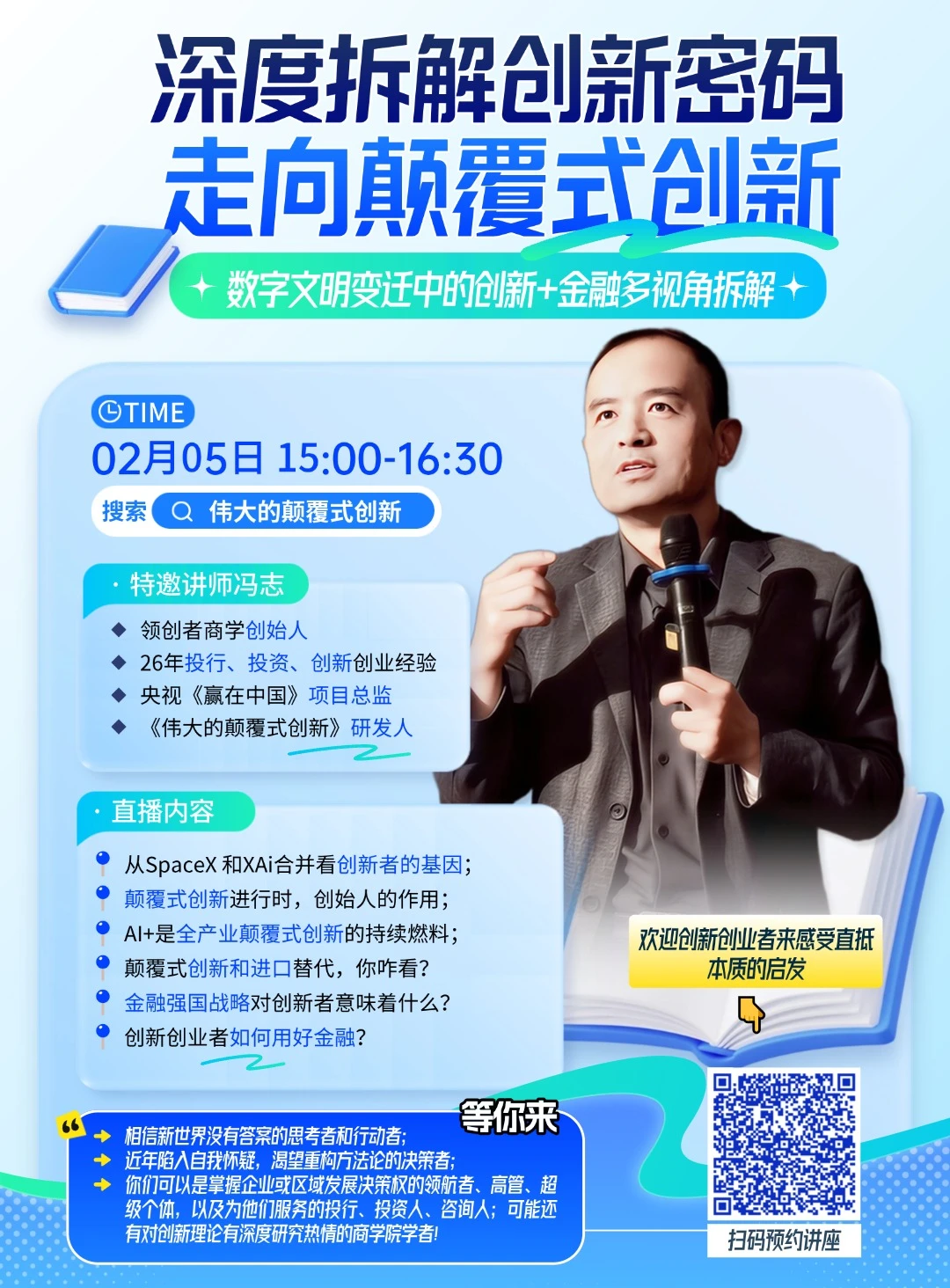 这不是一场泛泛而谈的趋势分享,而是一场面向【掌握企业或区域发展决策权】人群的系统拆解,同时也为投行、投资与咨询专业人士,以及对创新理论有持续研究兴趣的商学院学者,提供可讨论、可复盘的分析框架。