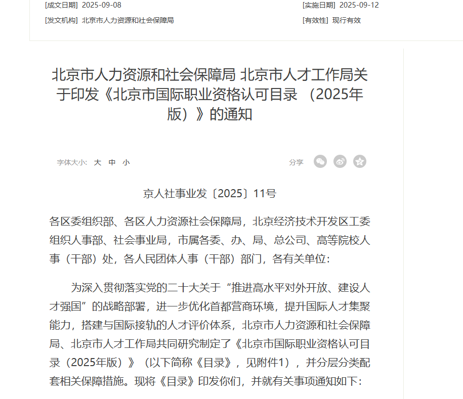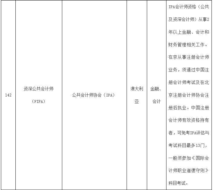 1、公共会计师协会(Institute of Public Accountants,以下简称IPA)会籍资格被同时纳入《北京市国际职业资格认可目录(2025年版)》的清单第142项与清单第5项。