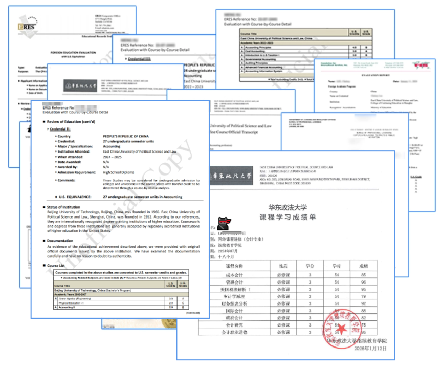 你需要向所选州会计委员会指定的评估机构提交成绩单,证明自己已修满规定的会计学分和商业学分。对于非会计专业的考生来说,这一步往往是整个备考旅程中的第一道坎,也是比较容易被低估的一环。很多人直到准备报名时才发现:原来自己还差不少学分。