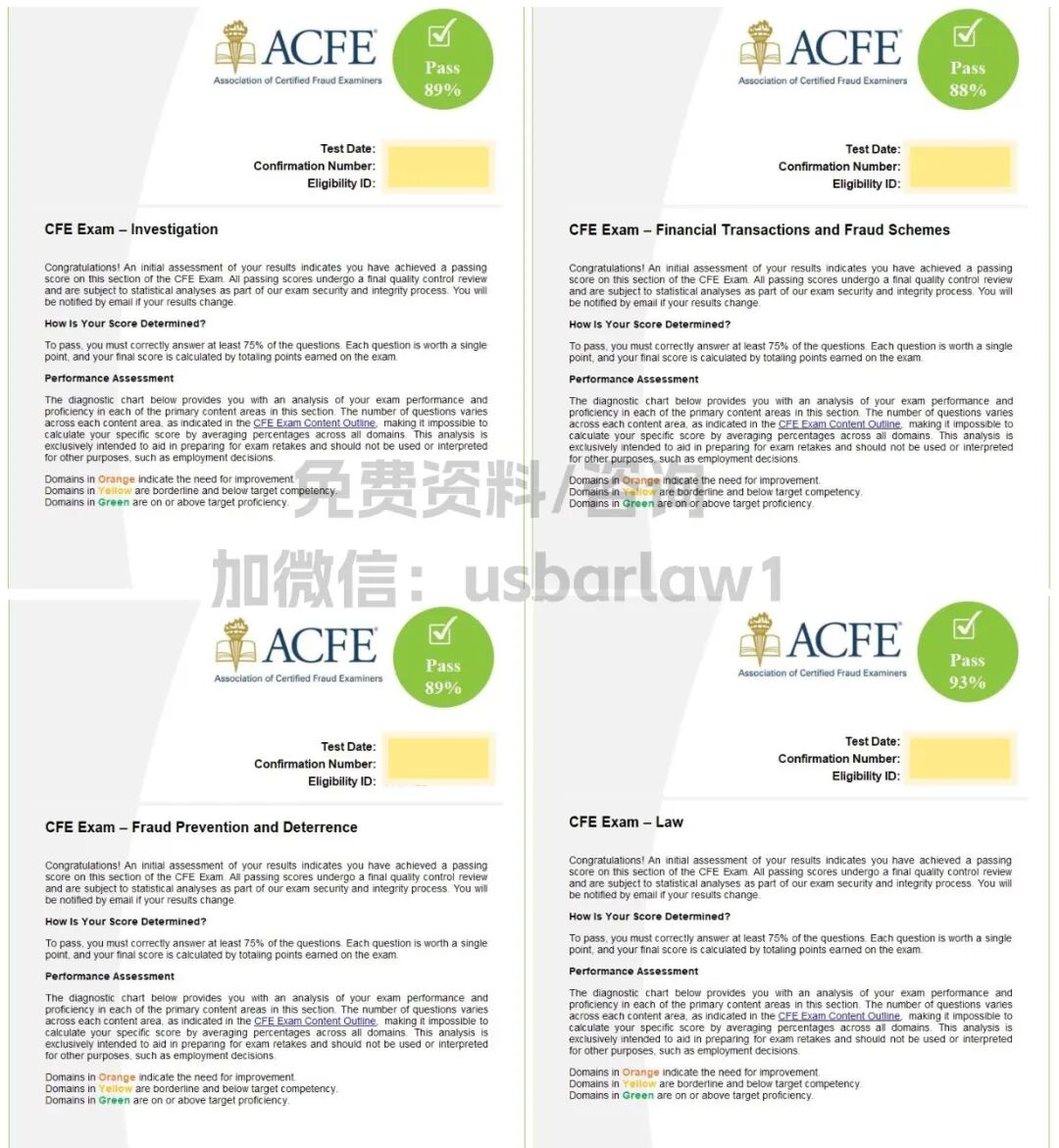 基于此,我下定决心备考CFE,并于近期顺利通关,四门科目均取得88-93分的优异成绩,实现一战上岸。