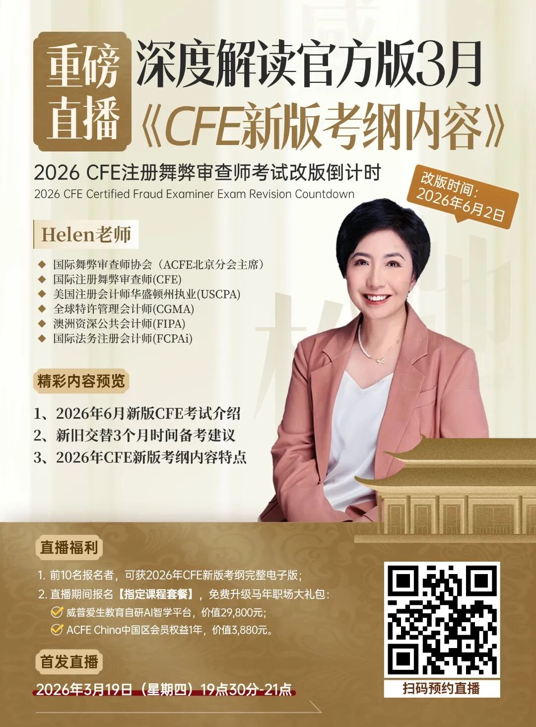国际注册舞弊审查师协会(ACFE)成立于1985年,由Joseph T.Wells博士(CFE、CPA)创立,是目前世界上规模最大的反舞弊专业组织,也是反舞弊培训和教育的内容和考试提供方。ACFE与180多个国家的95,000多名会员一起,正在全球范围内努力减少职务舞弊,并持续提供更有效打击舞弊所需的培训和各种资源。