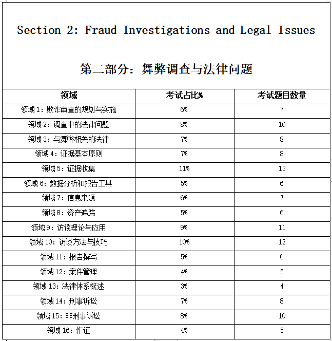 只有通过旧考试中的“Law 法律”和“Investigation 调查”两部分考试,您才能获得新考试中“Fraud Investigations and Legal Issues 舞弊调查与法律问题”部分的学分。