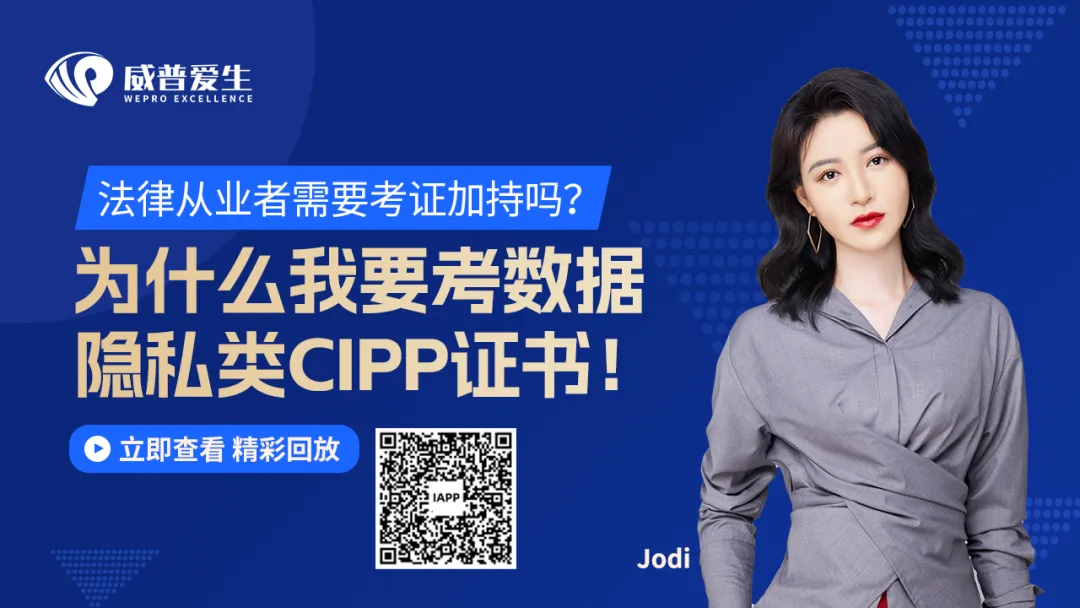 作为IAPP持证人,一定会更加关注这类新生认证的发展前景,也可能会做一个“敢于第一个吃螃蟹”的尝鲜人!扫码观看回放