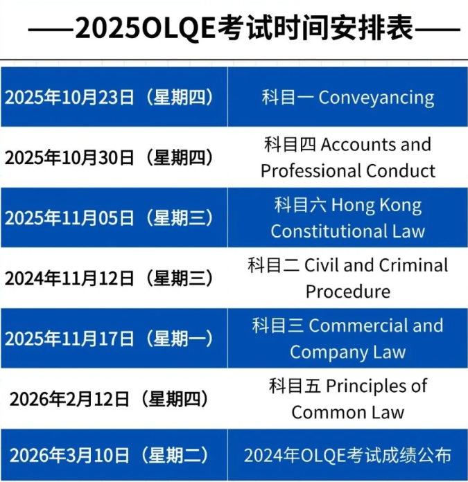 OLQE考试是由Hongkong律师会(The Law Society of Hong Kong)设立,是希望以Hongkong律师身份在Hongkong从事法律执业的Hongkong地区以外已获得律师资格的人士。