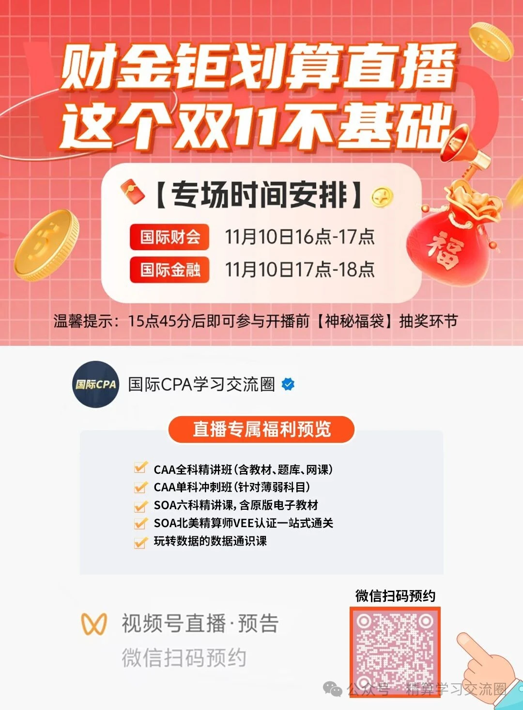 📍预约+观看方式:识别图1/图3海报二维码直达,点击预约后,系统将在活动当天发送开播提醒。记得关注@国际CPA学习交流圈,准时来看直播哦!