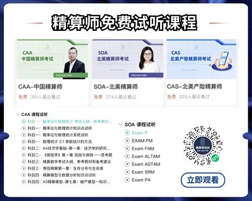 ♀️如果你对CAA中国精算师、SOA北美精算师、CAS产险精算师的报考条件、改革政策、备考规划、往年真题,考试时间、费用及地点,教材与题库、网课学习、备考答疑、各国精算师证书豁免、VEE认证等还有疑问,可以添加小编微信soacaacas或滑至文底阅读原文,获取一对一解答~