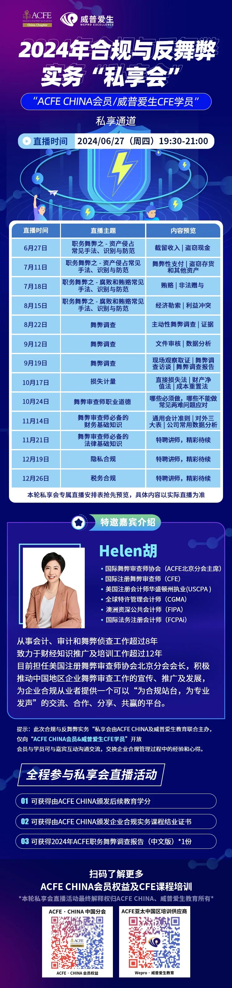 观看方式:ACFE China会员可在Antifraud Club公众号会员平台观看,威普爱生ACFE学员可在腾讯专属会议进行。