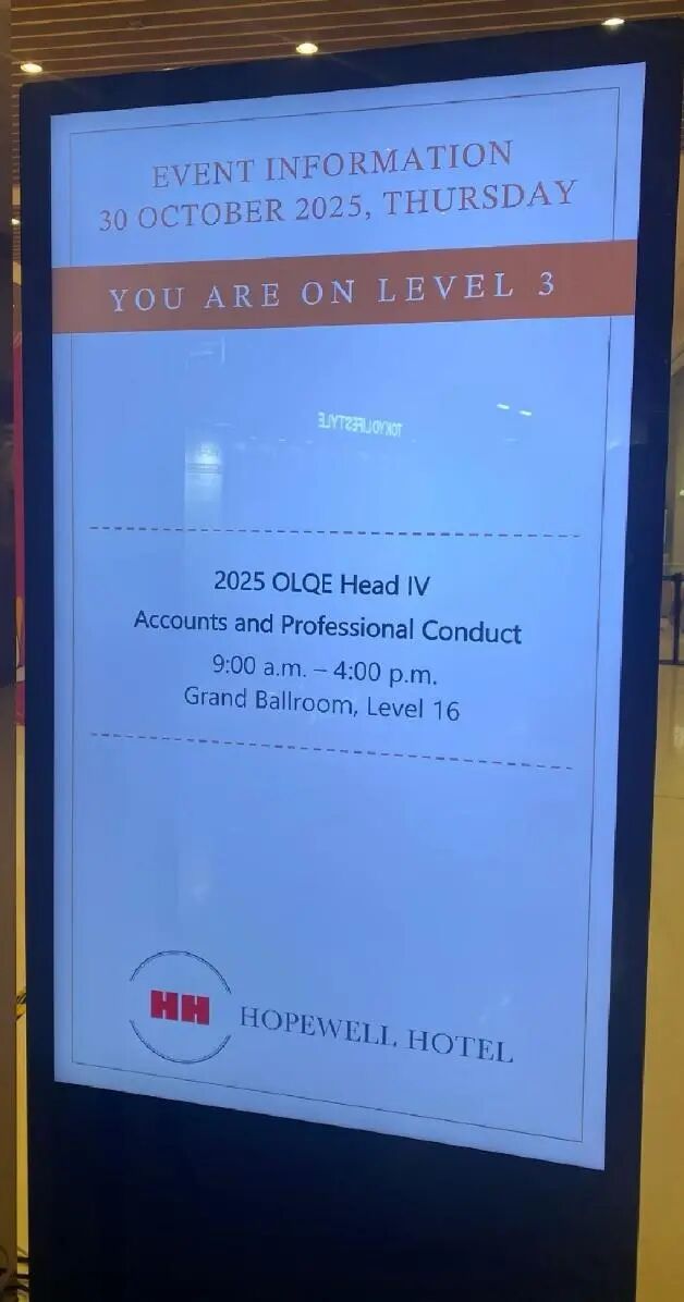 2025年10月30日(星期四)如期迎来香港海外律师职业资格考试OLQE(Overseas Lawyers Qualification Examination)科目四 - Accounts and Professional Conduct 考试!