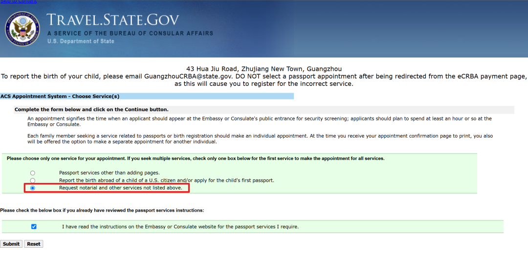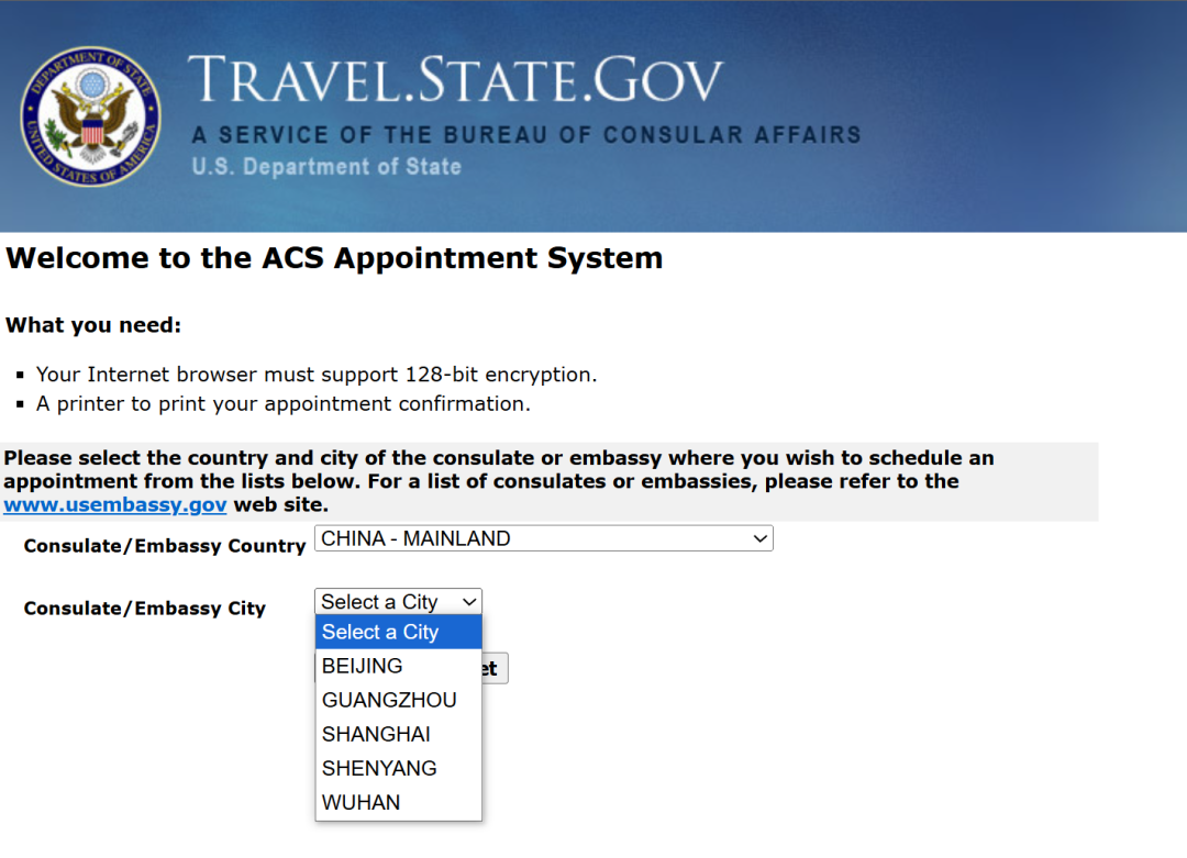 有需要的小伙伴们可以登录美国领事馆网站,https://evisaforms.state.gov/Instructions/ACSSchedulingSystem.asp 选择就近的领事馆以及可预约时间进行业务办理。