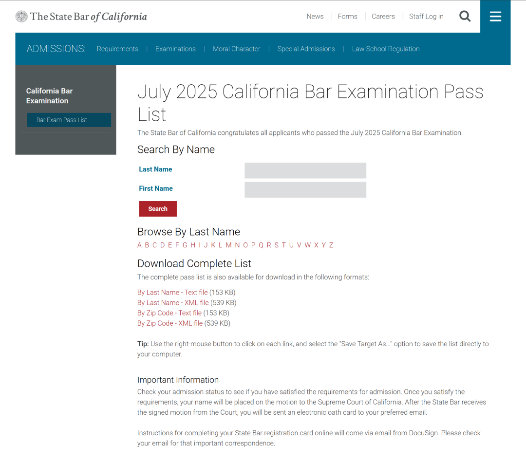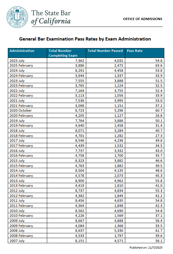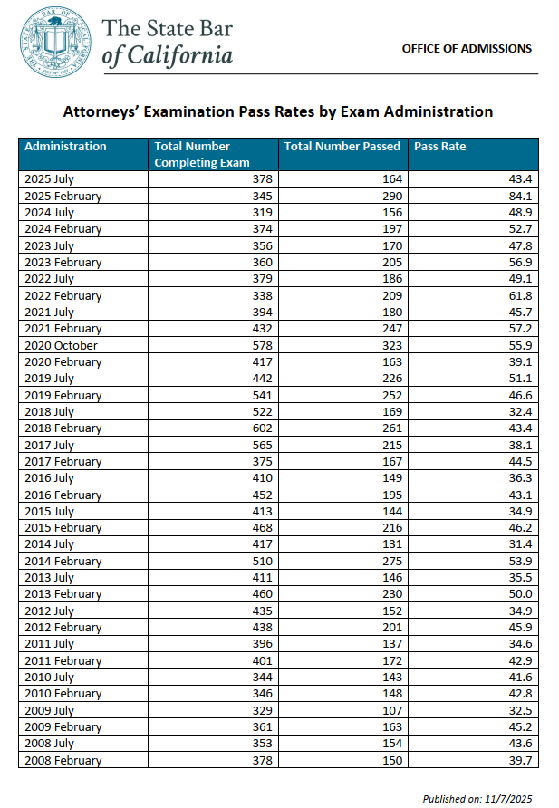 美国时间2025年11月7日下午5点(北京时间11月8日,上午9点),2025年7月份加州律考CABAR如期放榜!