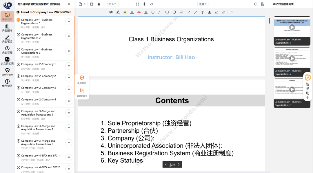 现在威普网校的课程已经升级了AI智学系统,可以实现实时在线翻译、答疑、提炼总结关键内容,还有专门的名词注解,可以批注做笔记,非常智能,大大提高学习效率!