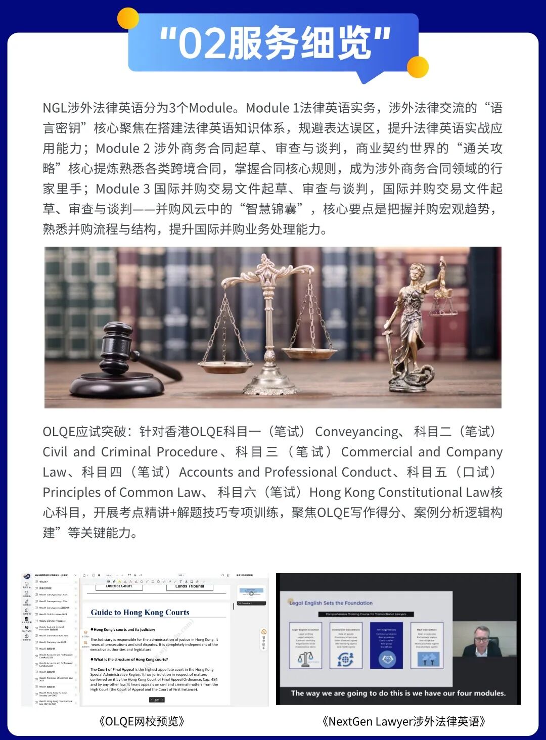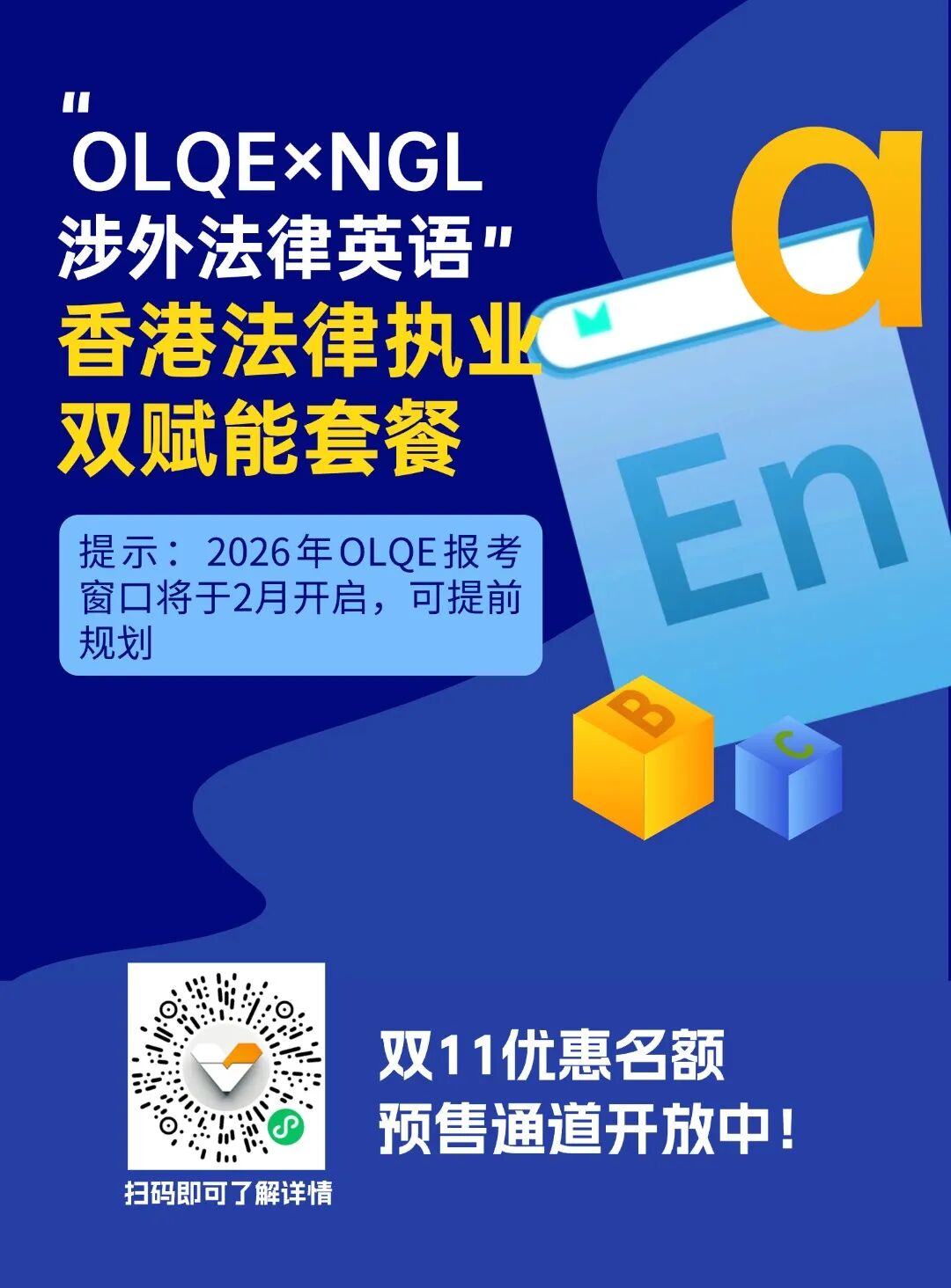 ✅能力衔接绝绝子:NGL涉外法律英语专攻香港普通法术语(比如“fiduciaryduty(信义义务)”“estoppel(禁止反言)”)、英文法律意见逻辑表达这些核心场景,还能同步锚定OLQE对法律英语的要求,再也不用担心“考过OLQE却接不了香港涉外业务”。