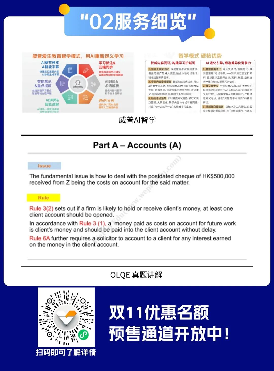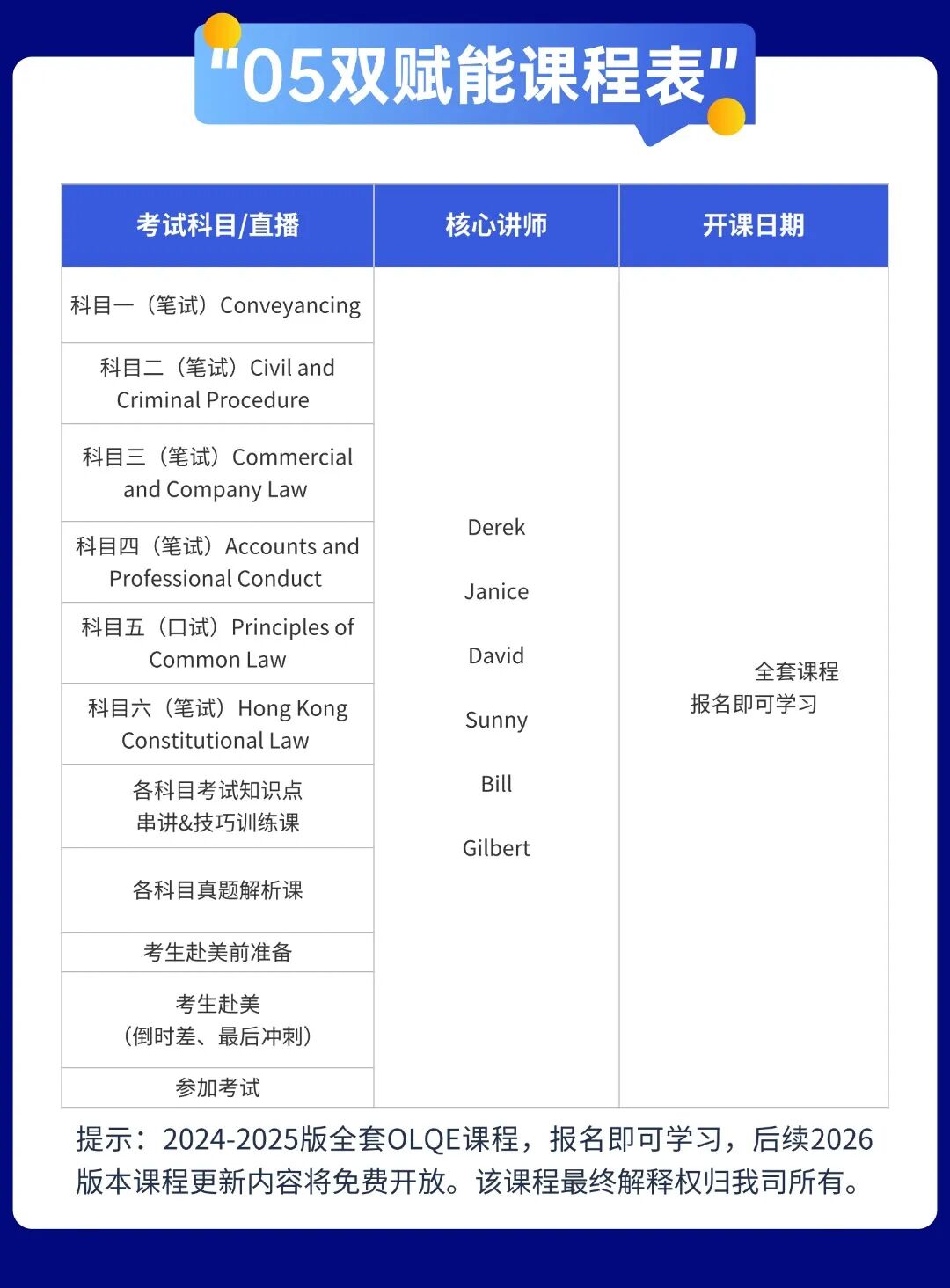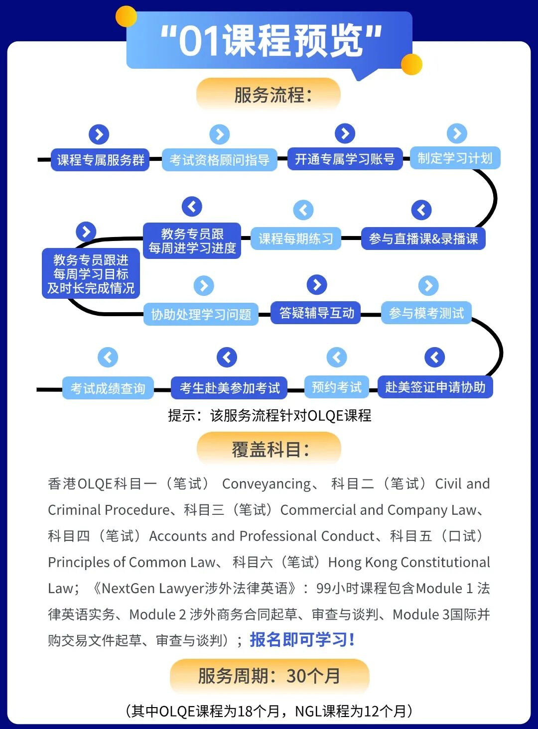 OLQE针对香港律考6大科目,开展考点精讲+解题技巧训练,写作得分、案例分析逻辑这些关键能力也会重点练。