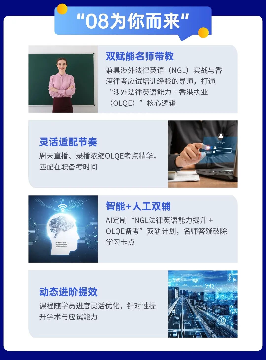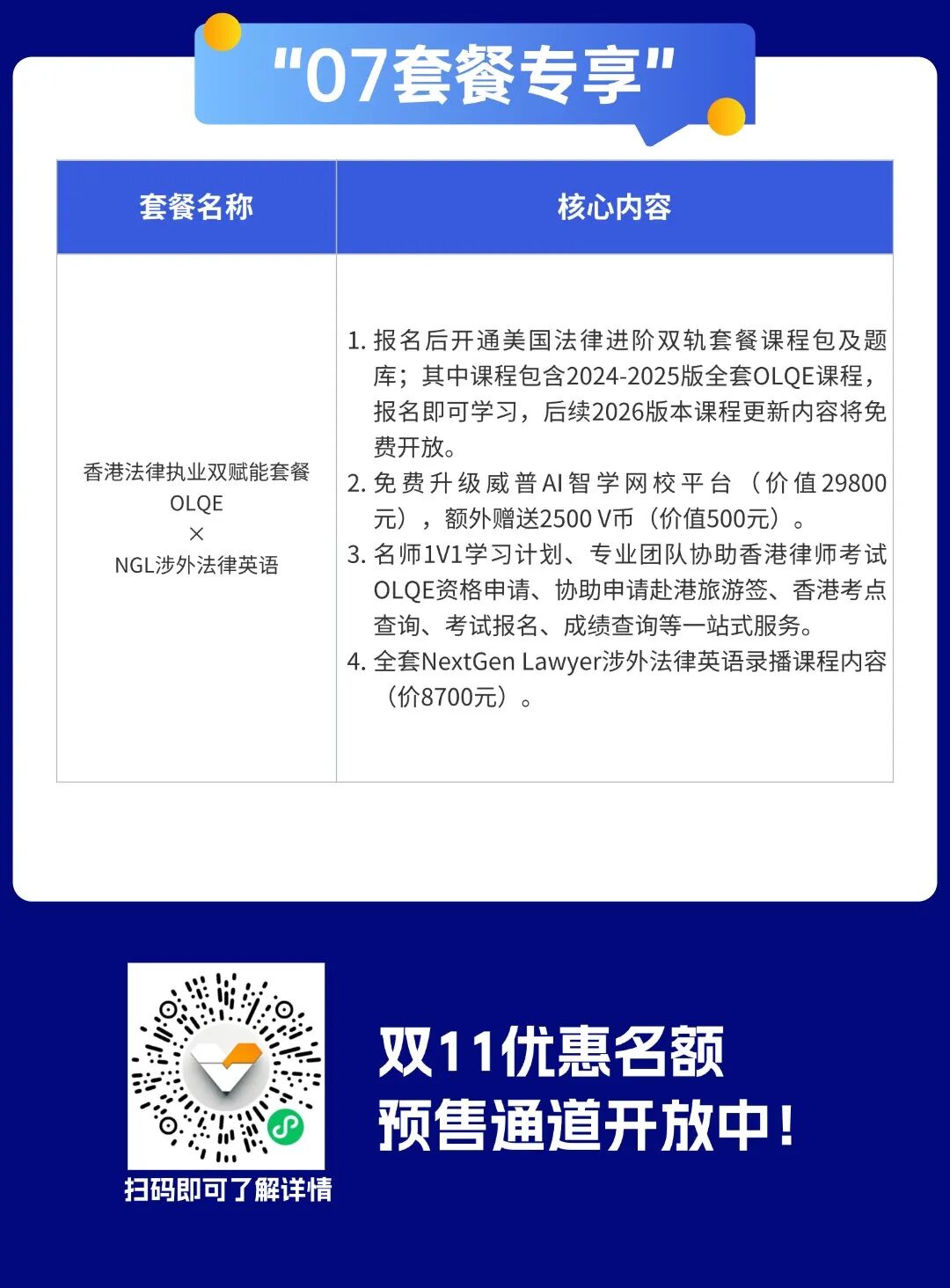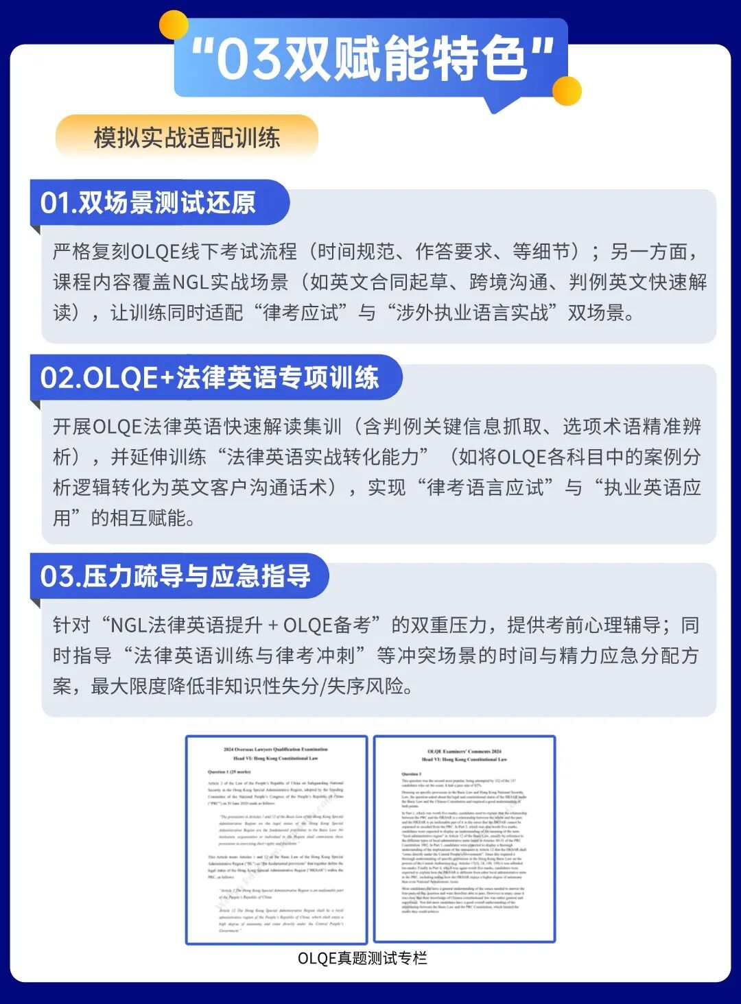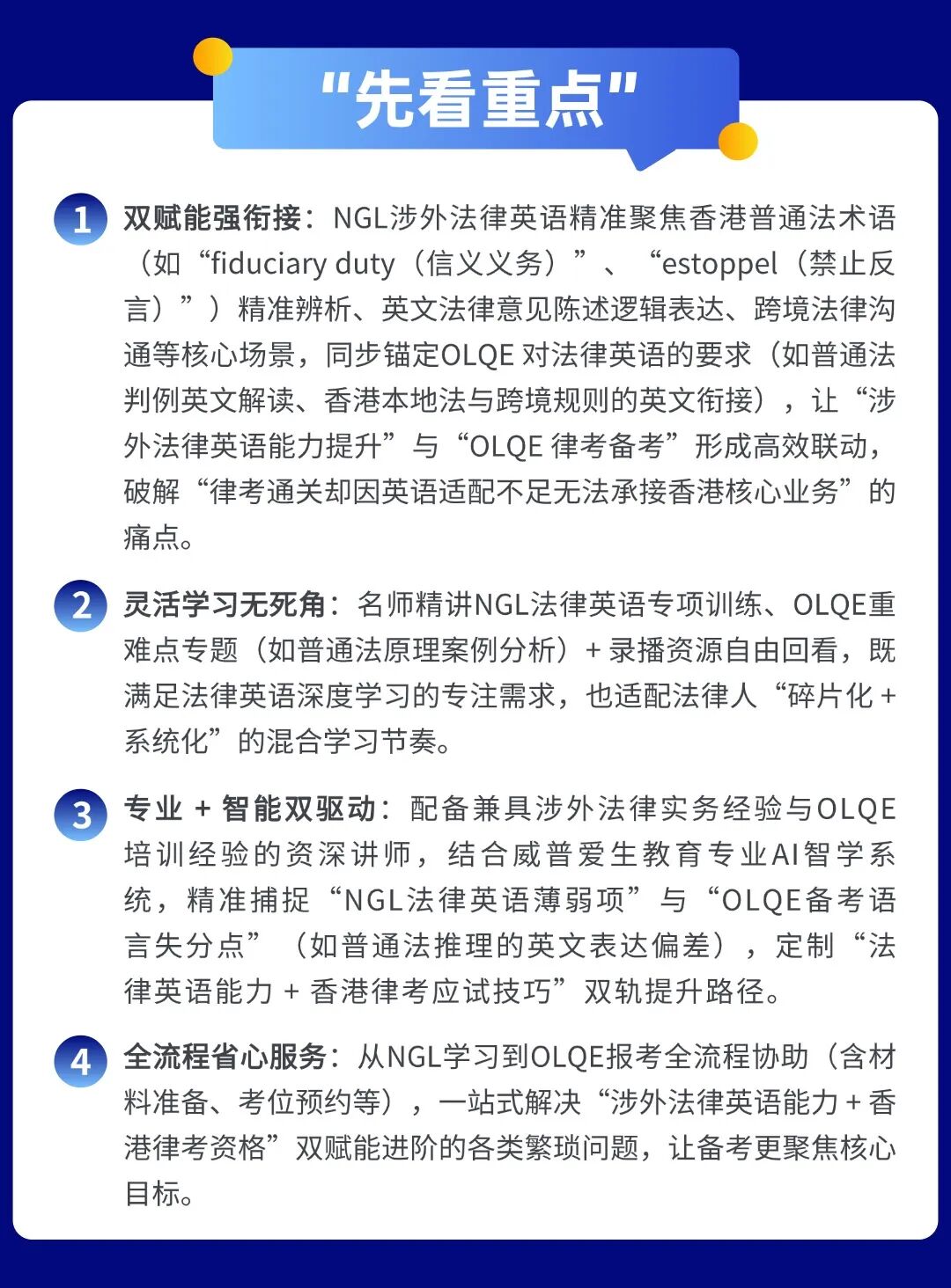 别慌!其实真的不必过分担忧!英语能力是可以在学习过程中不断提高的!威普爱生教育的OLQE×NGL涉外法律英语香港法律执业双赋能套餐,帮你解决“懂香港法律但用不好英文,”的痛点,2026年OLQE报考窗口将于明年2月开启,现在布局刚刚好!