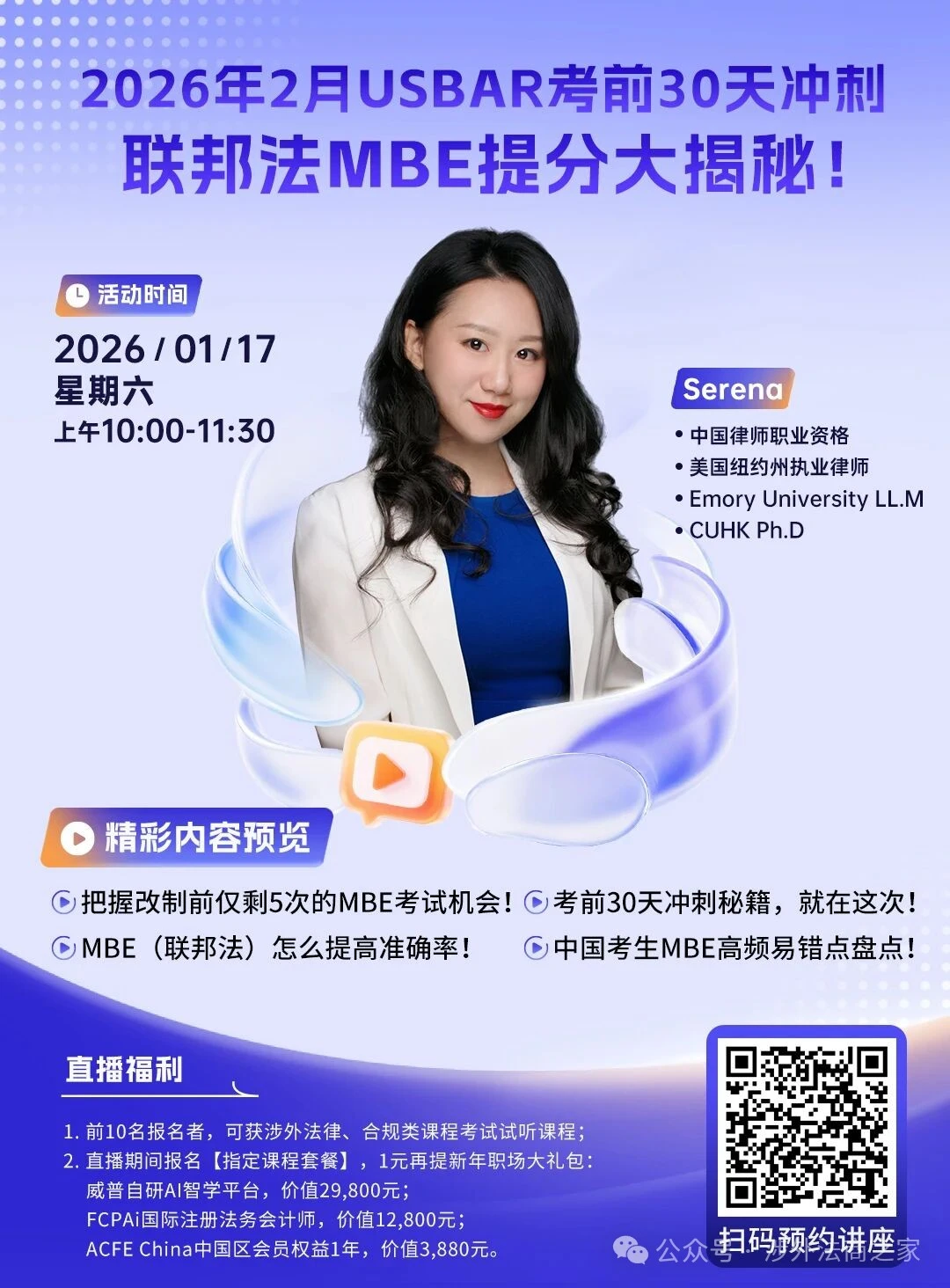 👉预约+观看方式:识别海报二维码立即预约,有任何疑问可添加小律(usbarlaw1)咨询