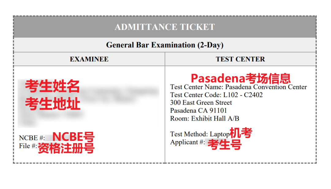 如果在“Admittance Ticket”栏目无法查看到准考证,点击下图“Contact Name”对应的名字后,下拉至底部“Demographics”检查相关信息是否填写完整和准确。如果需要填充该部分信息,点击页面的“Edit”,完成更新后保存,返回上一级页面,刷新后即可下载准考证。如果多次尝试后还是无法下载准考证,记得及时联系加州律考工作人员。2024年2月份加州律考的准考证如下图,小伙伴们记得一定打印出来哦!▼已报名参加2月份考试的小伙伴们还会收到一封主题为“ IMPORTANT: Installation & Registration Instructions for the State Bar of California ”,来自Examsoft的邮件,通知机考软件可以下载、安装、注册。首先,一个重要提示,机考软件登录的信息,都在该邮件内容的“底部”,请大家注意查看。IMPORTANT: Your login information is located at the bottom of this email! Please keep this information secure and safe!