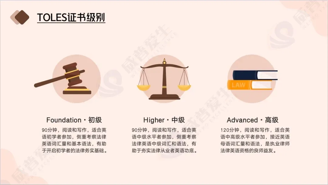TOLES,全称“Test of Legal English Skills”,于2000年设立,2008年被引入中国,由The London School of English & Communicaid和Cambridge Law Studio研发。