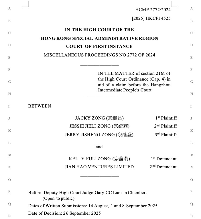 香港法院的处理速度和力度令人印象深刻。2025年8月1日,下达禁制令冻结资产;8月15日,宗馥莉方提出上诉,但9月26日被驳回。