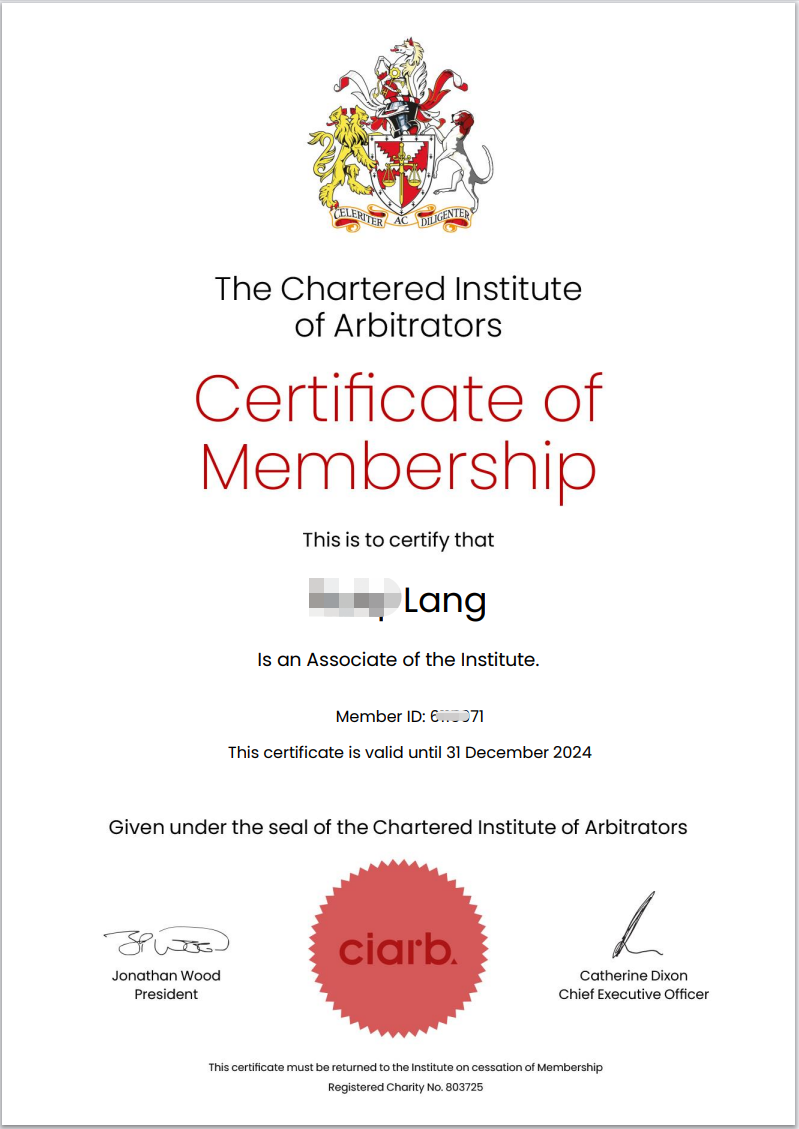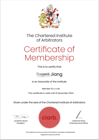已有不少学员通过了CIARB的考试,并已获得会员资格证书!在此热烈祝贺各位学员顺利加入英国皇家特许仲裁师协会!