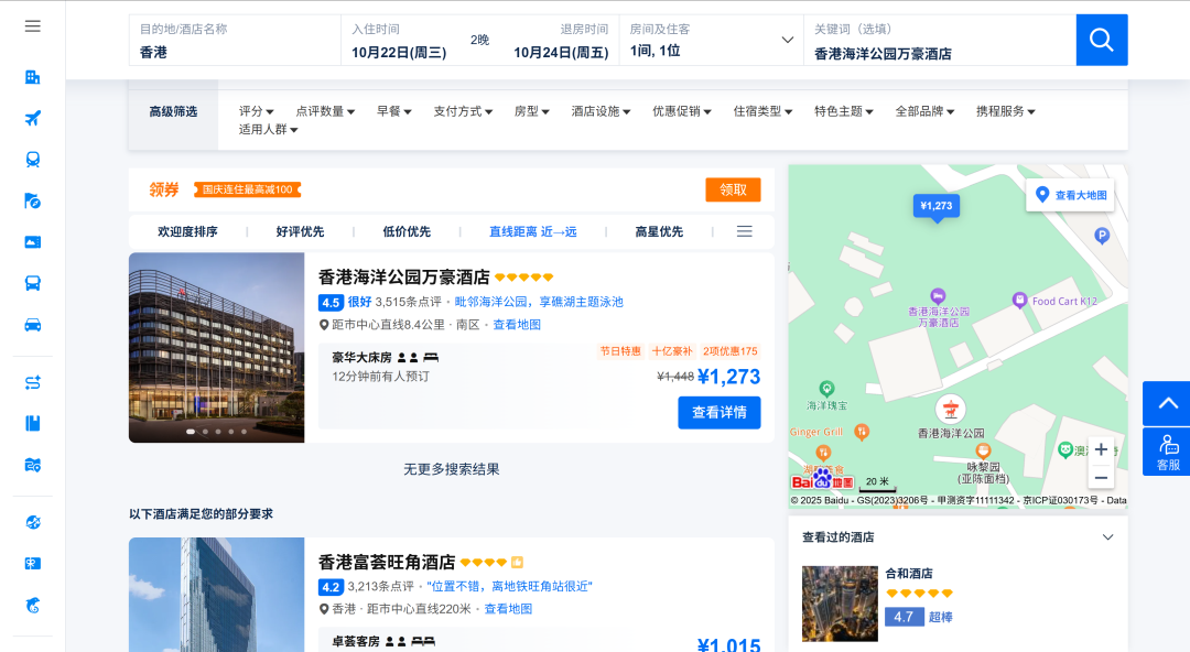 香港海洋公园万豪酒店位于香港南港岛,有如城市中的绿洲,与市区紧密相连,交通便捷,乘南港岛线地铁只须数分钟便可直达金钟、湾仔等商业地段。