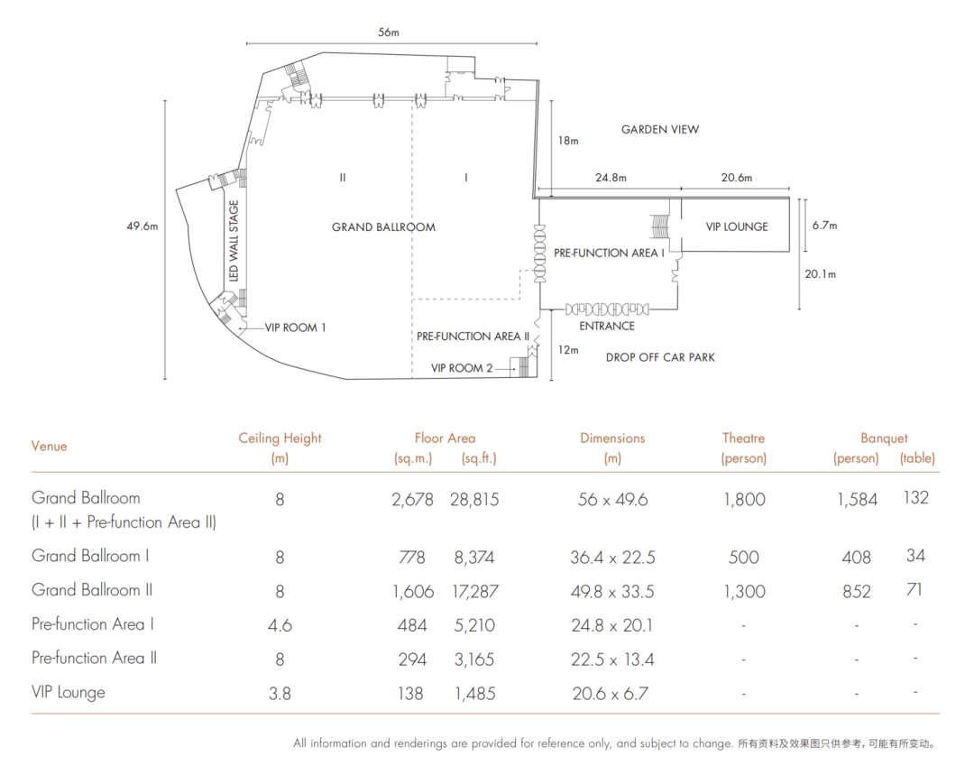 Capacity Chart 场地面积表来源:万豪酒店官网