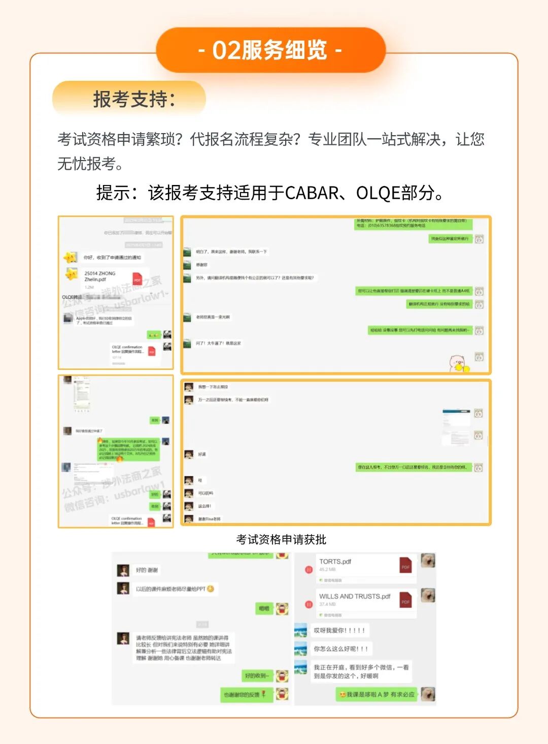 ✅全流程省心服务:从双考备考规划到CABAR、OLQE报考(考位预约、材料准备这些琐事全搞定),一站式解决问题,你只管专心冲双证。