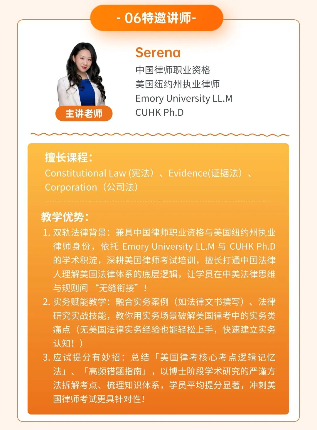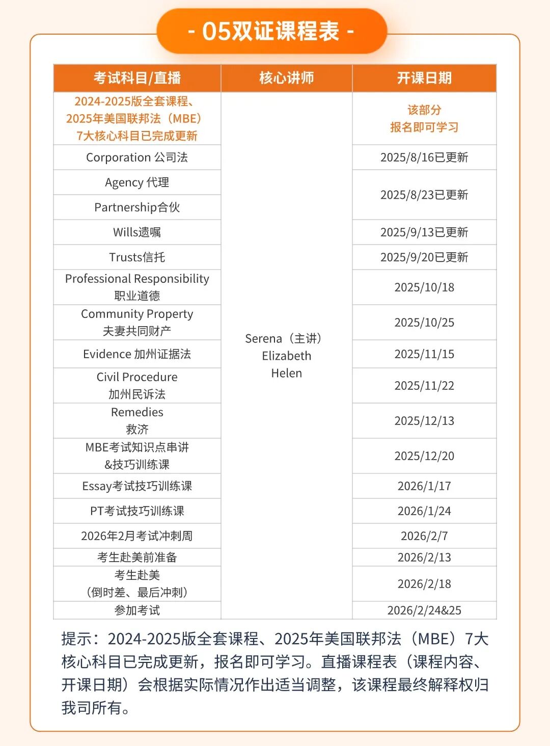 为了更好地应对2026年美国加州律考CABAR,我们也上线了一系列直播课程(包含公开课及内部学员专属直播)目前Serena老师的USBAR美国律考系列直播持续更新中!