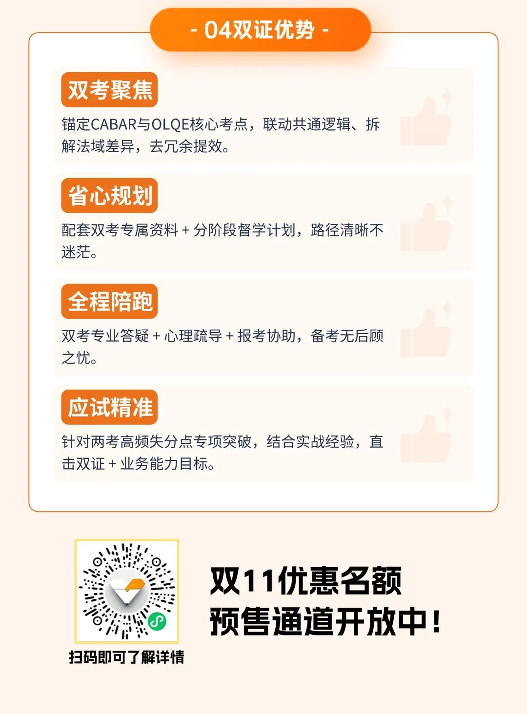 ✔备考CABAR或OLQE其中一考,想同步攻克另一考拿双证,还想通过“考点联动”降低备考成本的考生;
