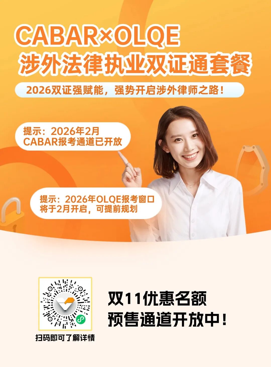 所以想做涉外律师的小伙伴不妨把CABAR和OLQE都拿下!成为资质硬核的三证律师!