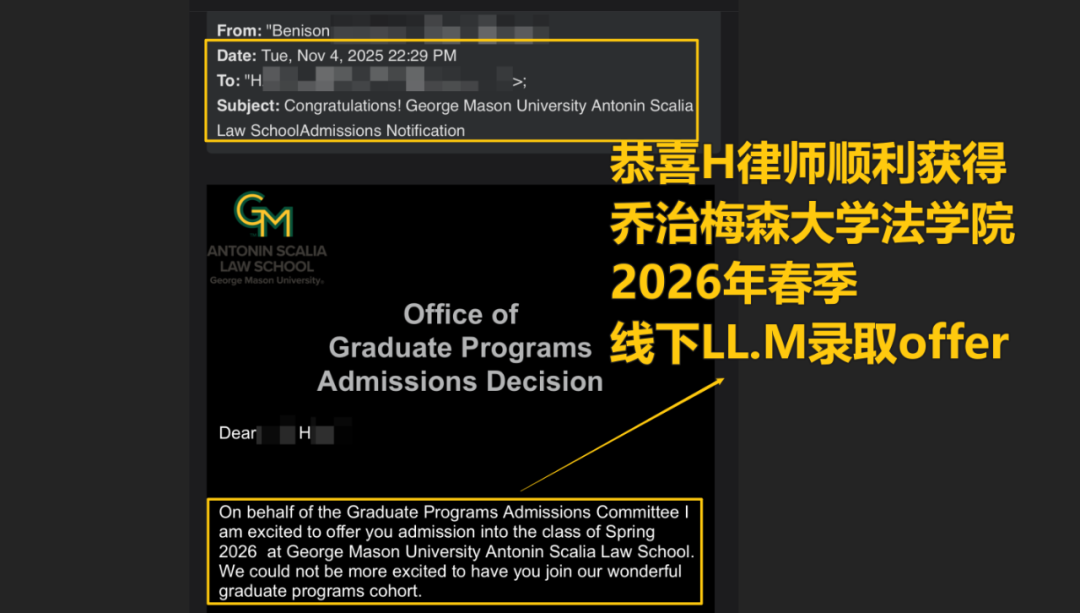 其实我们也可以帮助申请线下LL.M,在此再次恭喜H律师成功申请线下LL.M!