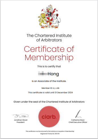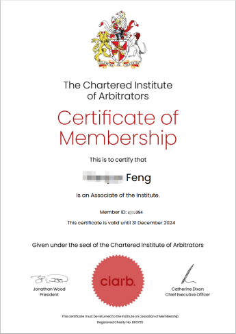 已有不少学员通过了CIARB的考试,并已获得会员资格证书!在此热烈祝贺各位学员顺利加入英国皇家特许仲裁师协会!