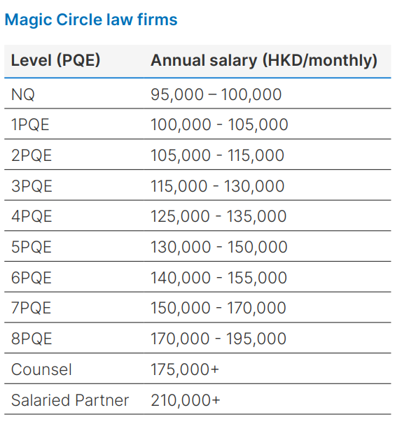 在香港的国际律所的薪资情况如下: