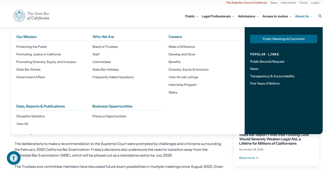 在2026年1月23日举行的联席会议上,加州律师协会董事会和律师考试委员会(CBE)做出了具有里程碑意义的决定,投票同意探索一项计划:从2028年开始,加州律师协会将采用美国律师考试委员会(NCBE)的NextGen UBE(下一代版本的全美统一律师考试),并且不包含加州特定部分。