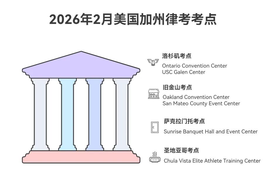 今年2月加州律考,加州律协官方共计开放了6大考点供全球考生选择,大家心仪哪个考点呢?