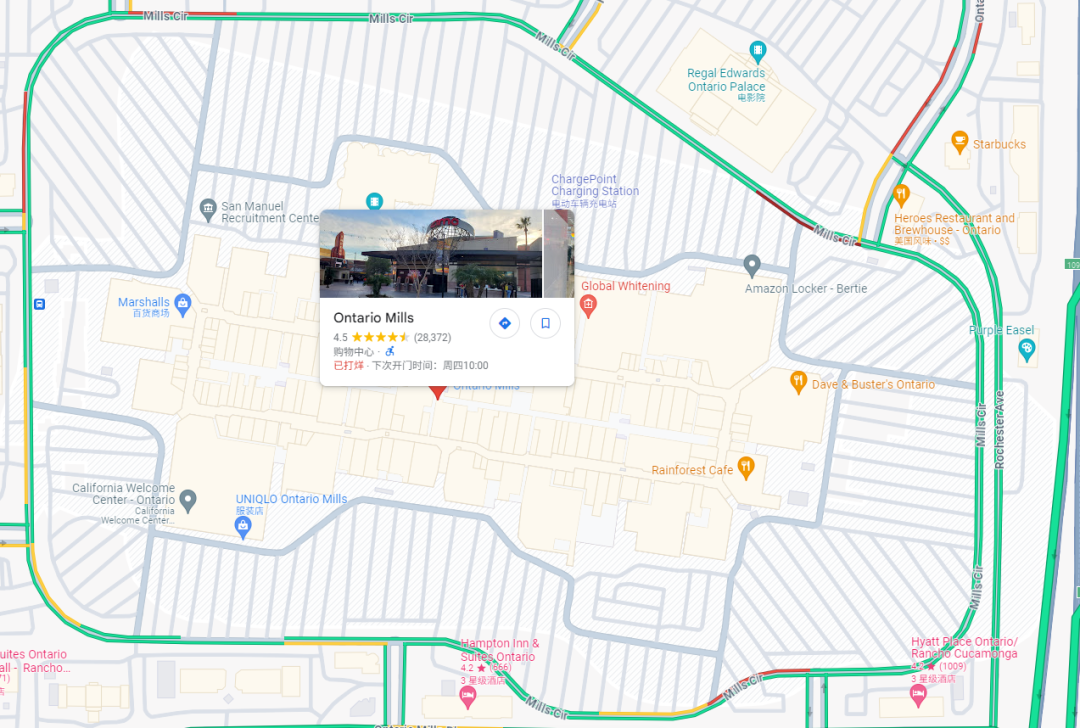 Ontario Mills:这是一个大型的购物和娱乐中心,非常适合购物和休闲。
