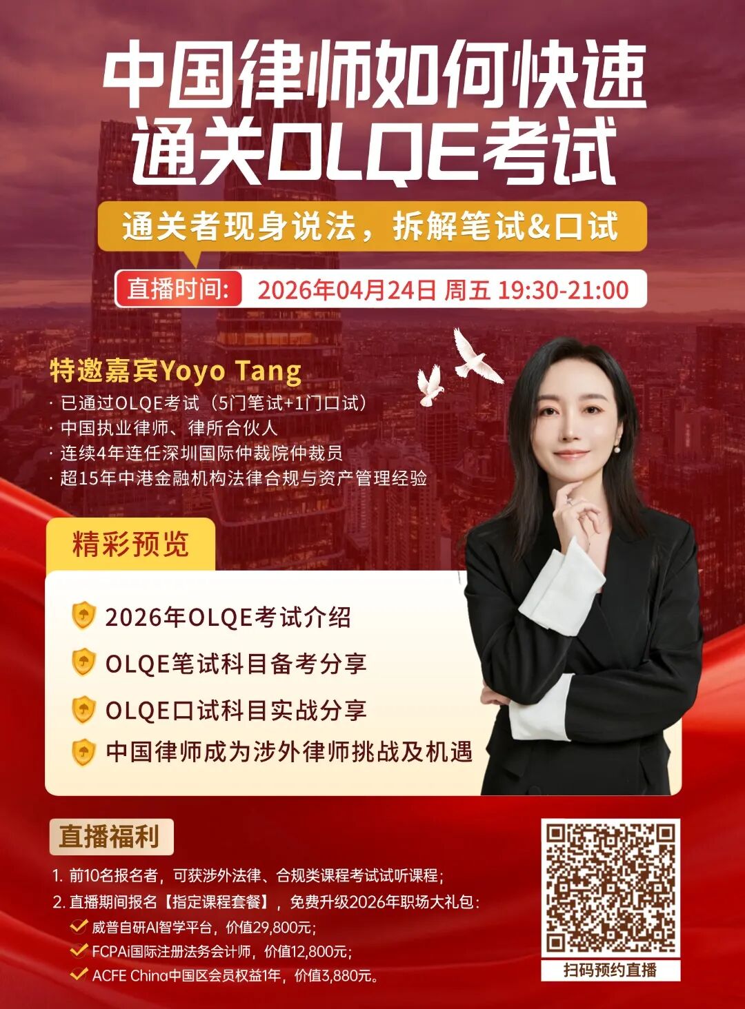 中国律师如何快速通关香港律师OLQE考试?通关者现身说法,拆解笔试&口试!为了让大家顺利备考“OLQE香港律师考试”,本周五晚19点30分,特别邀请OLQE通关律师Yoyo Tang与我们分享关于OLQE通关经验等精彩内容。