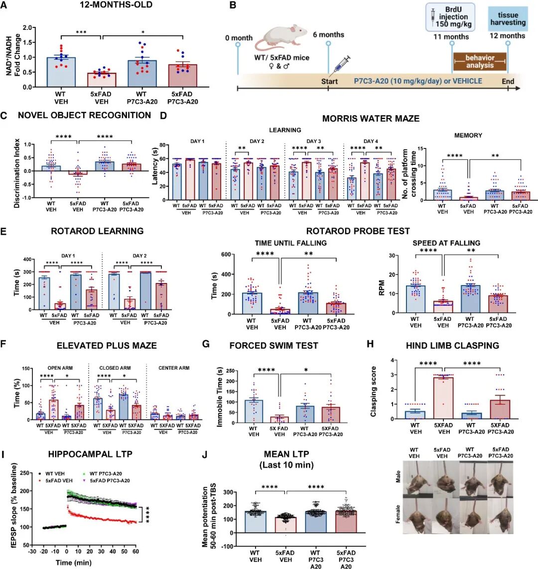 P7C3-A20恢复老年5xFAD小鼠脑功能(图源:Cell Reports)