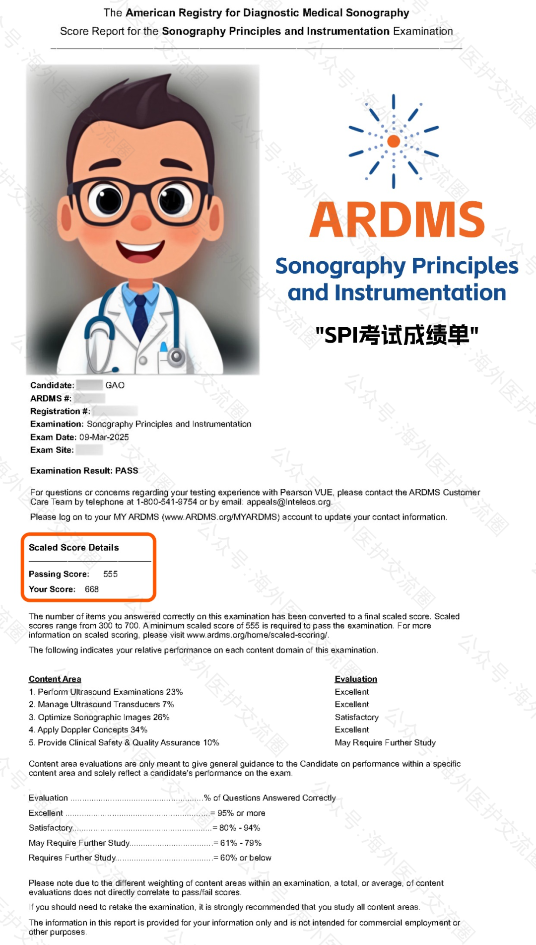 图片来源:ARDMS-SPI考试成绩单(上岸学员分享)