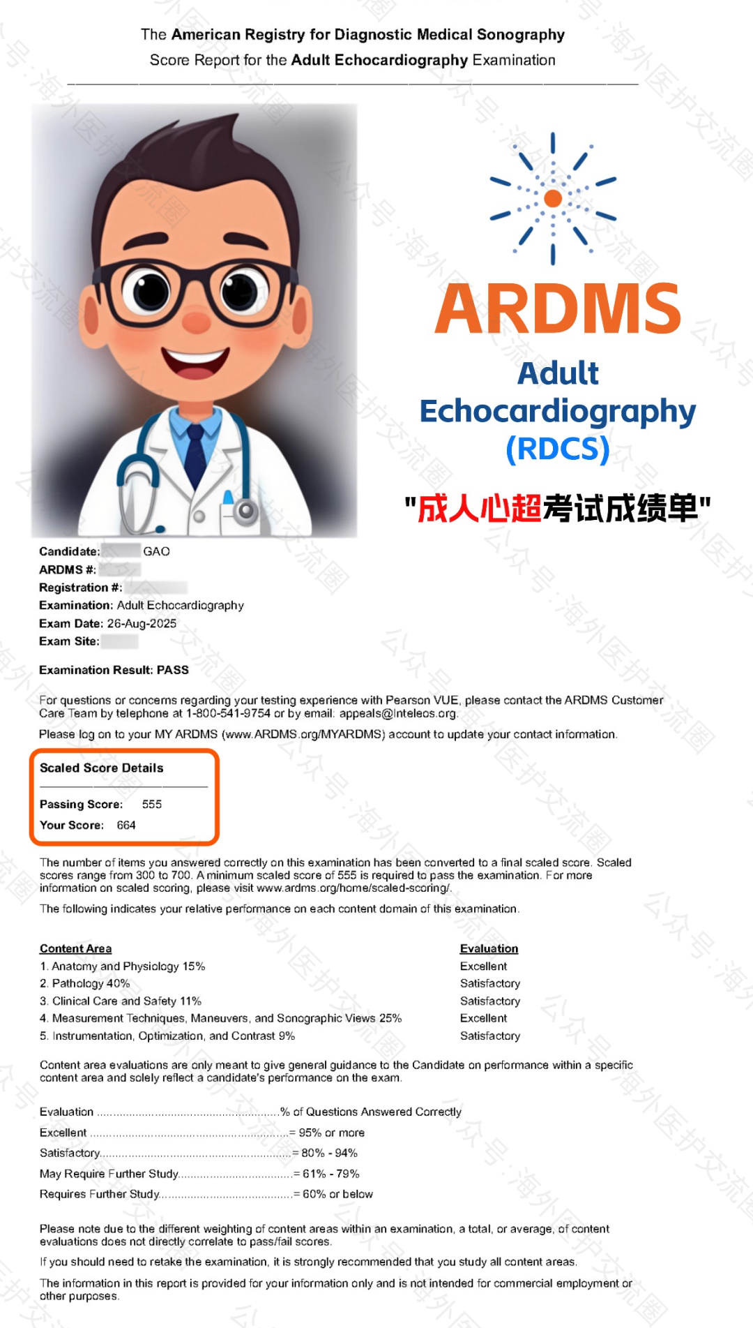 2025年8月26日:664分通过Adult Echocardiography(RDCS);