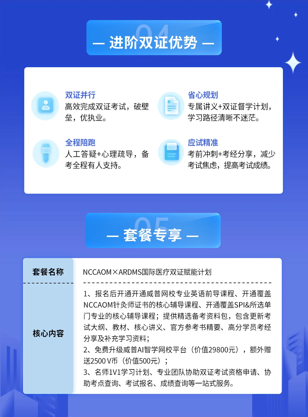 🙋🏻♀️别担心,威普爱生教育为大家量身打造“双证联报计划”,助力医生和医学生一次备齐国际双证,轻松应对未来国际医疗职业挑战!