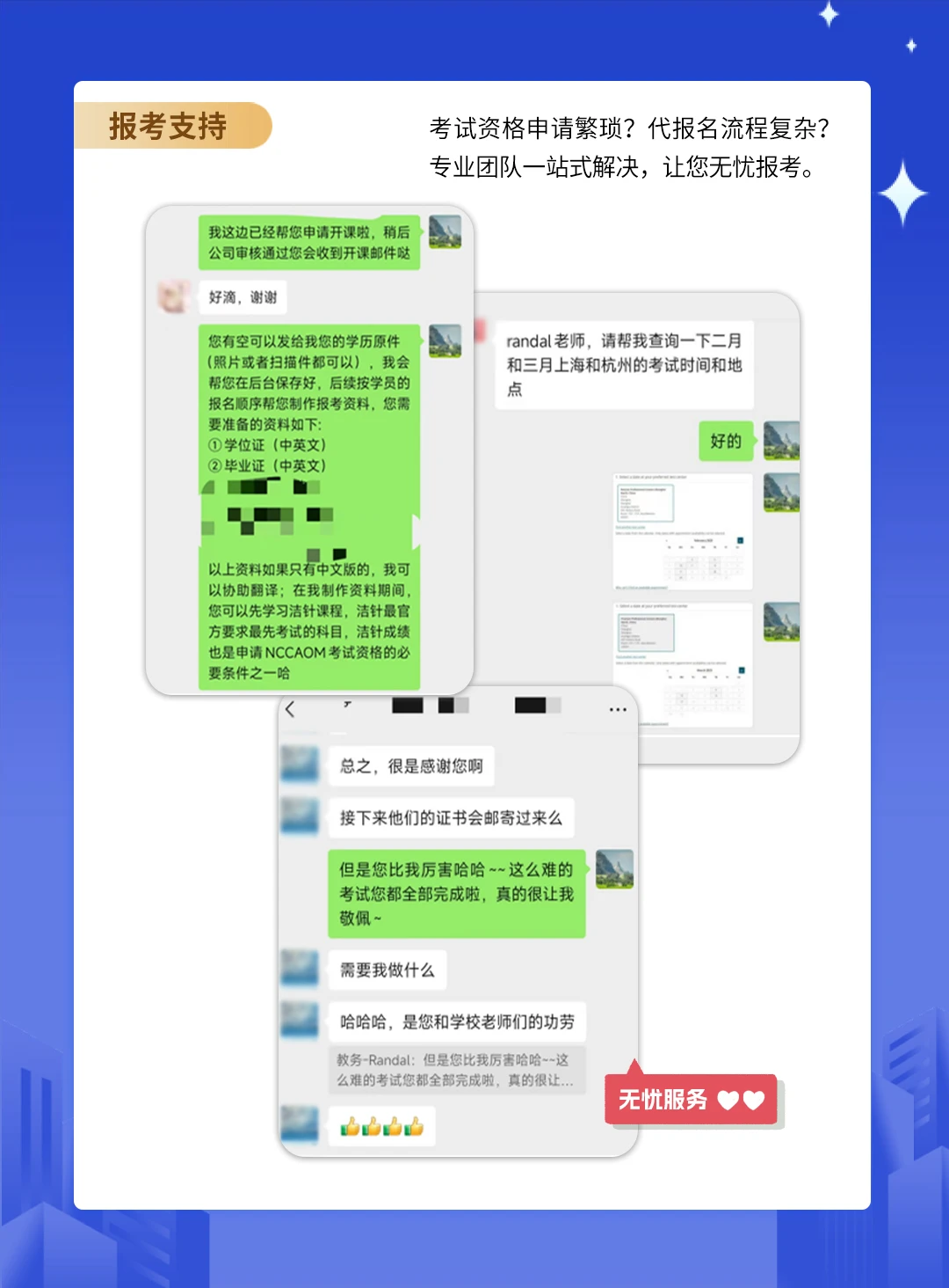 ✔全流程省心服务:从资格申请到考试报名,教务团队一站式服务,无忧备考。